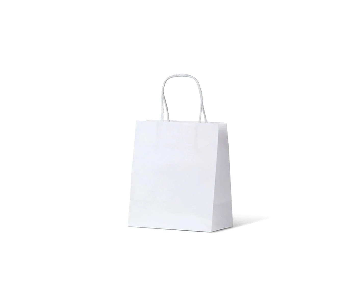 Boutique Mini White Bag with a paper twist handle – 200mm (High) x 200mm (Wide) + 110mm (Gusset)
