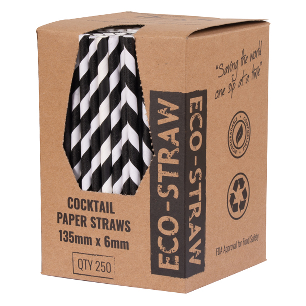 Paper Drinking Straw Cocktail – Black – White Stripe – 12/5.5 (Carton of 2500)